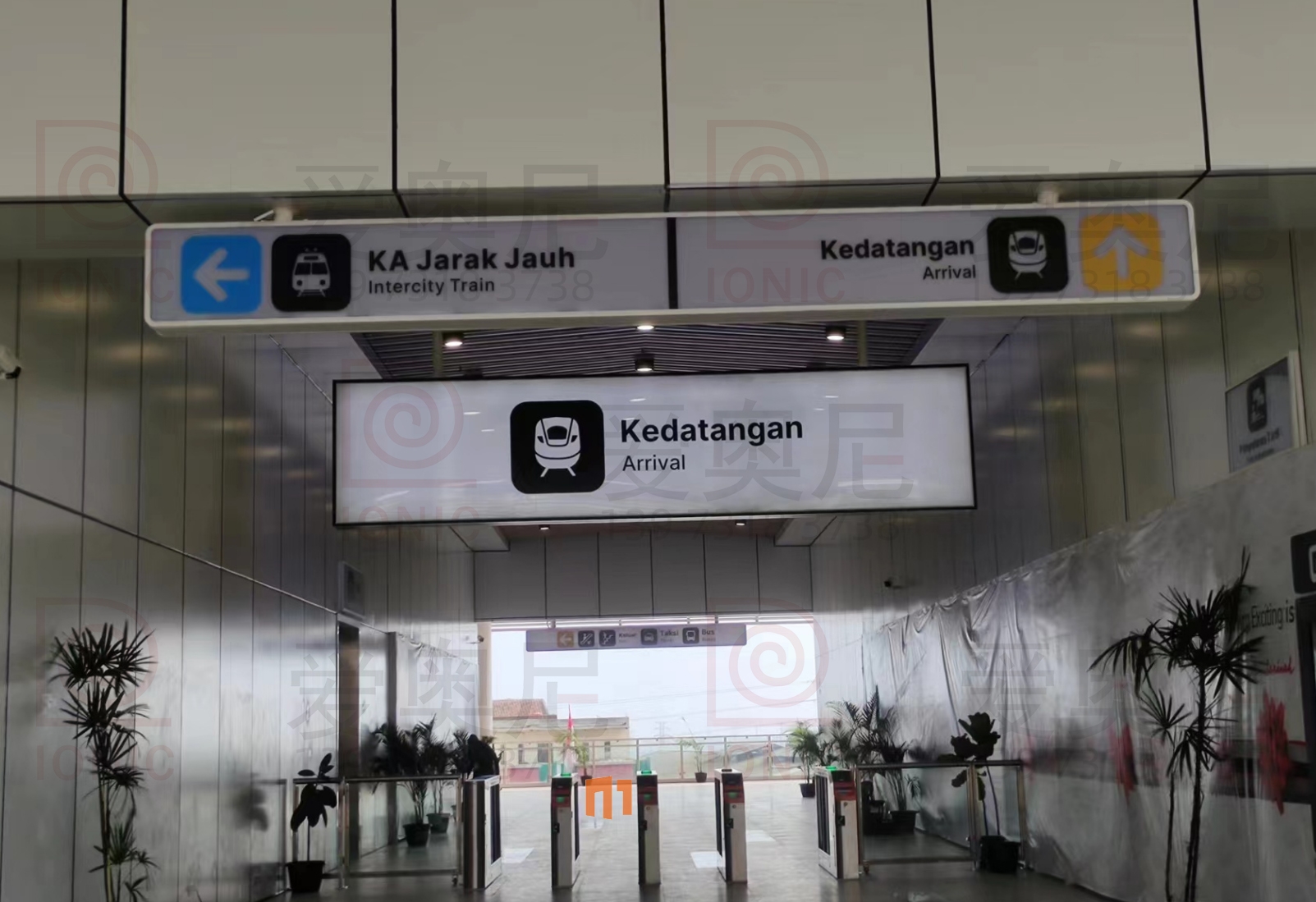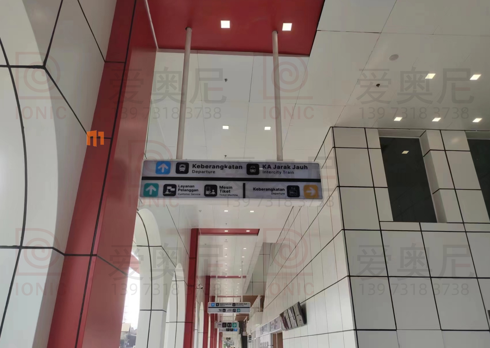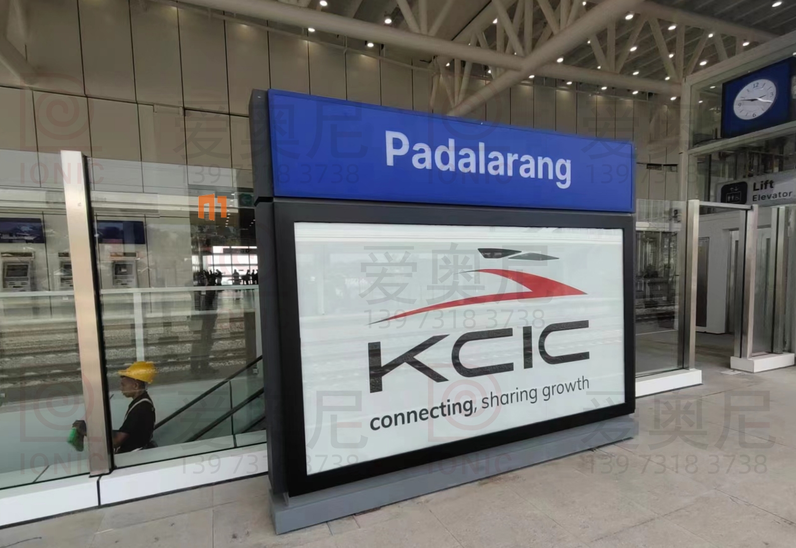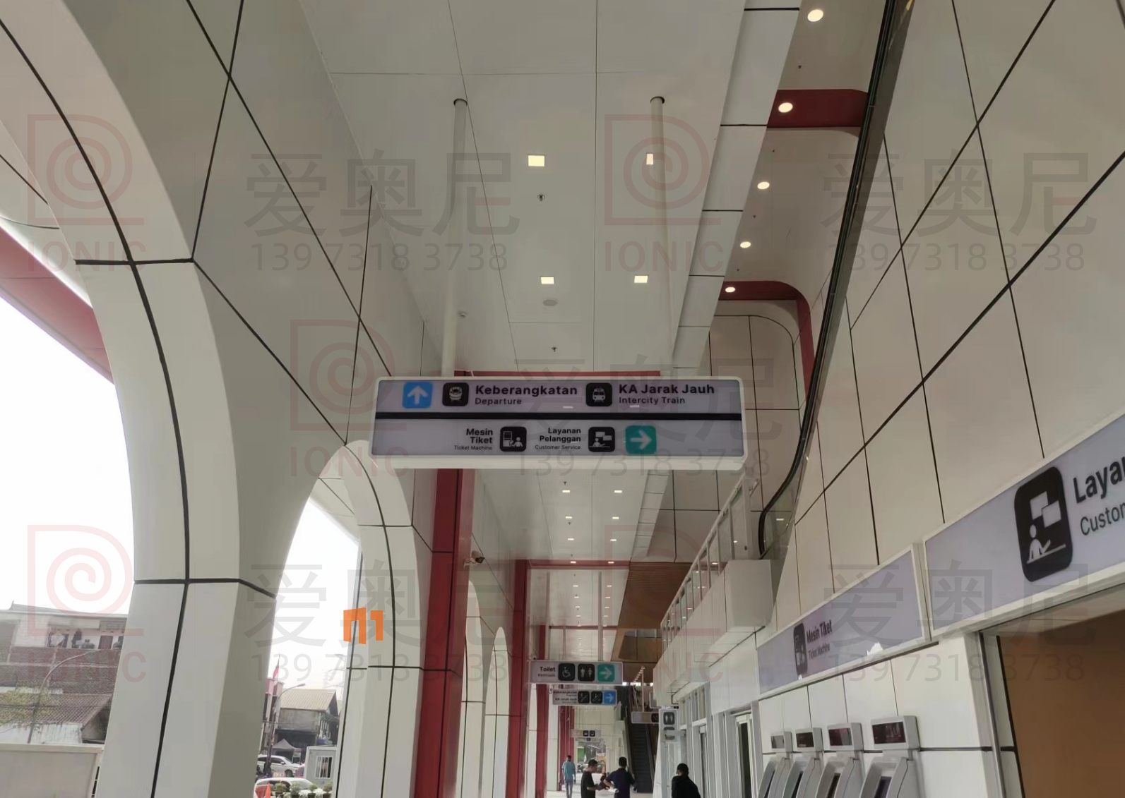 2023年9月7日,東南亞第一條高速鐵路雅萬高鐵正式開通運營。雅萬高鐵是東南亞第一條高速鐵路,也是中國高鐵首次全系統、全要素、全生產鏈在海外落地的高速鐵路項目;雅萬高鐵西起雅加達的哈利姆站,東至萬隆的德卡魯爾站,共設有4座車站,正線長142.3KM,設計時速為350km/h,最高運營速度也可達到350km/h。愛奧尼為雅萬高鐵四座車站中的帕達拉郎站提供全站的靜態標識生產和安裝指導服務工作,本項目時間緊任務重,公司依托多個的車站靜態標識項目的服務經驗,在最短的時間內保質保量的完成了生產工作以及現場安裝指導服務,并獲得業主的高度認可。